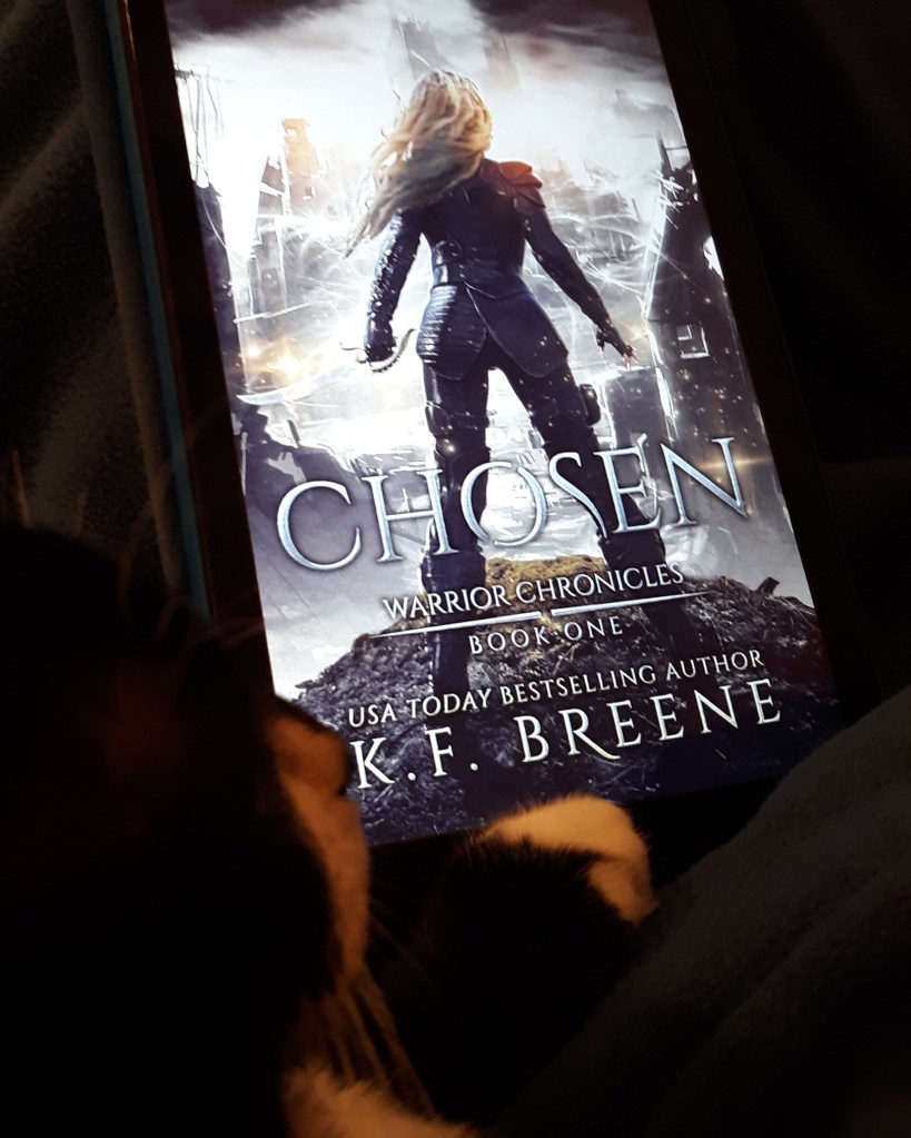 Our March book was Chosen (Warrior Chronicles 1) by K.F. Breene. If you were around for the February chat then you may now know this author is one of the Fab13 leading the #PWF movement. However, this book was released in 2014 is and classified as Fantasy and Action Adventure. It has 1,732 ratings (4.4 avg) on Amazon and 15,478 ratings (3.98 avg) on Goodreads. The cover and blurb follow.
