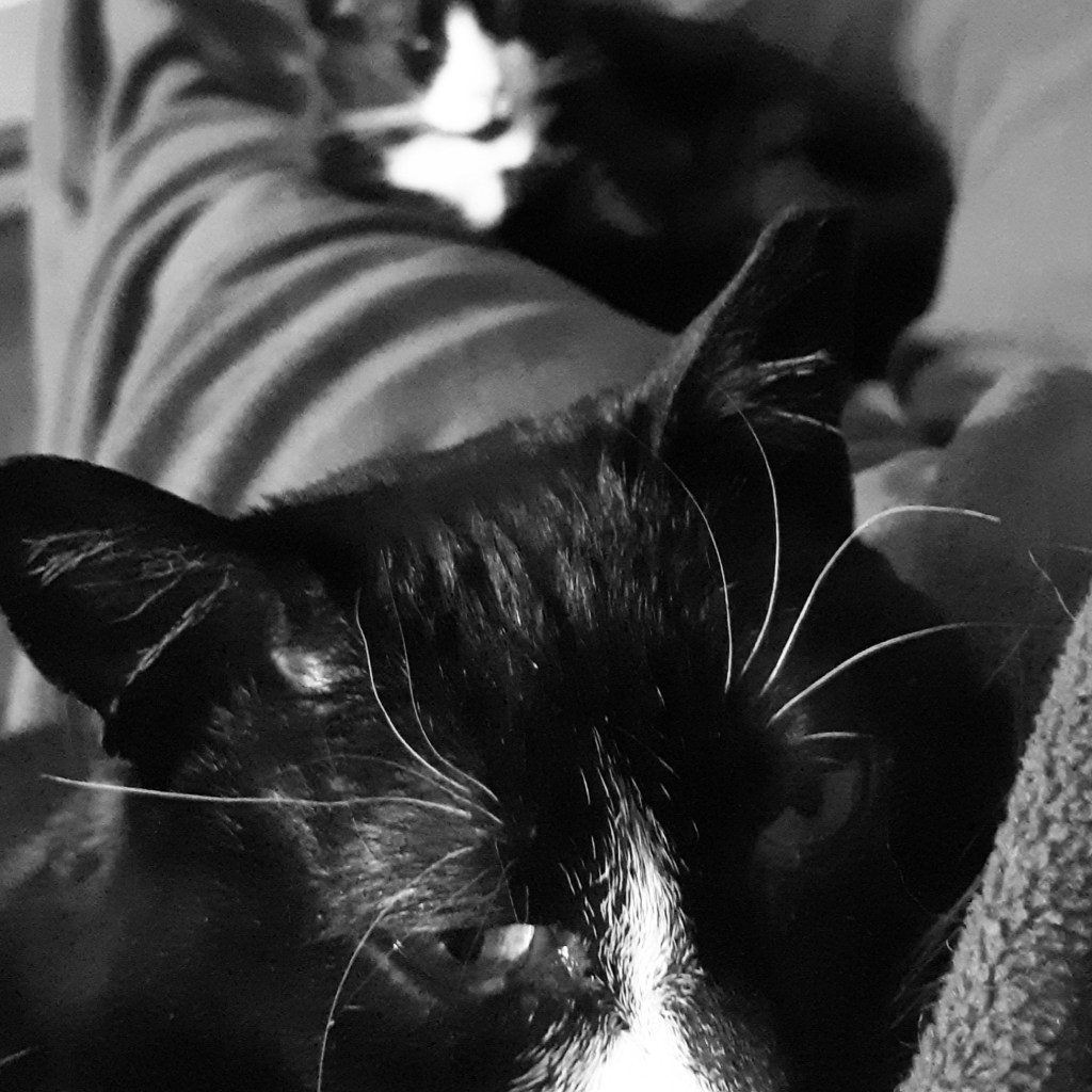 Here’s a cute picture of two of my furbabies to enjoy while I’m being lazy. The next Book Chat focuses on Moon Called (Mercy Thompson #1) by Patricia Briggs and that post will be up in a timely manner.